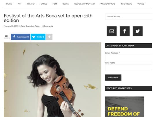 Festival of the Arts BOCA Palm Beach ArtsPaper February 28, 2017 Click here to view at PalmBeachArtsPaper.com Placements Archive View all Placements
